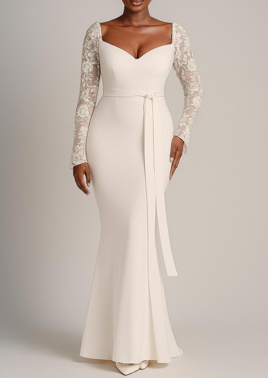 LACE SLEEVE SWEETHEART NECKLINE MERMAID GOWN