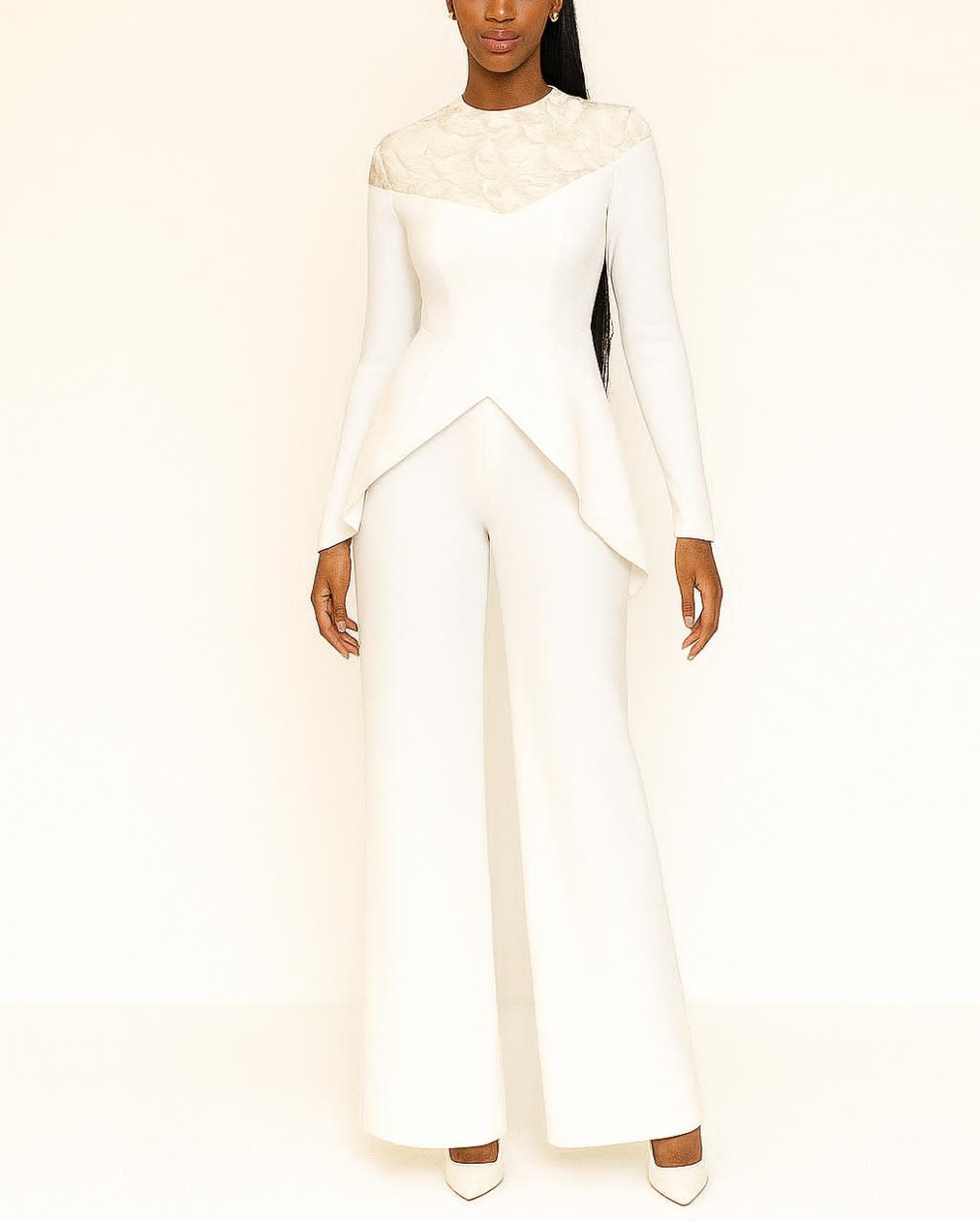 LACE YOKE PEPLUM & PANTS BRIDAL SET